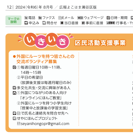 タウンニュースの「せやde輝くサークル」に団体の紹介が掲載されました。(2023/11)
